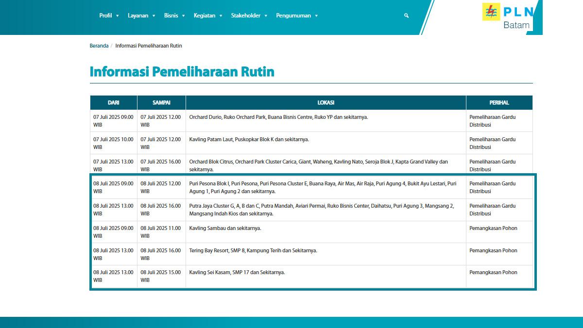 PLN mengingatkan bahwa jadwal dapat berubah sewaktu-waktu tergantung kondisi lapangan dan cuaca.